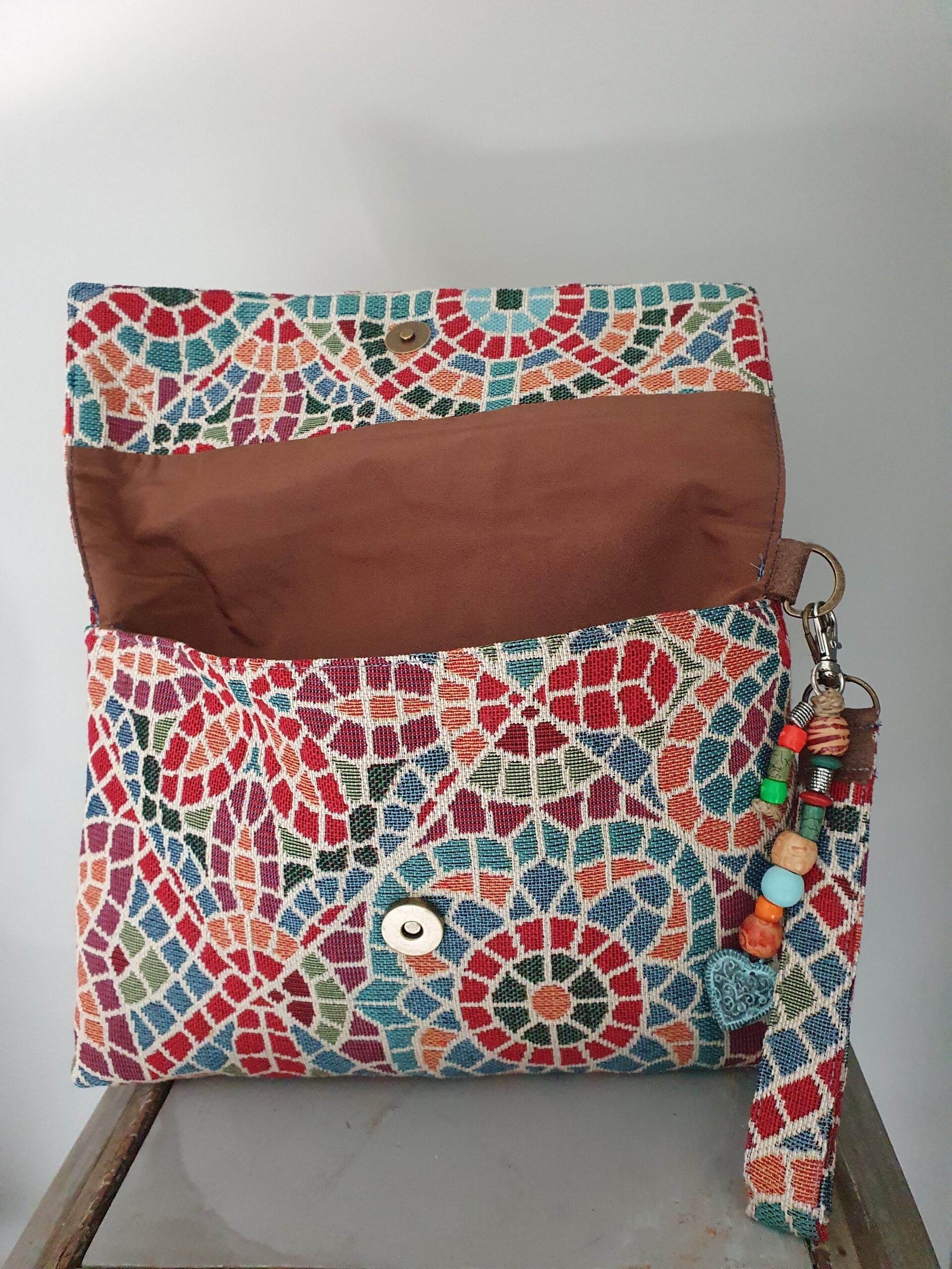 De clutch Ibizza ‘Gris et Rose’ is een clutch met een mobiel vakje binnenin.