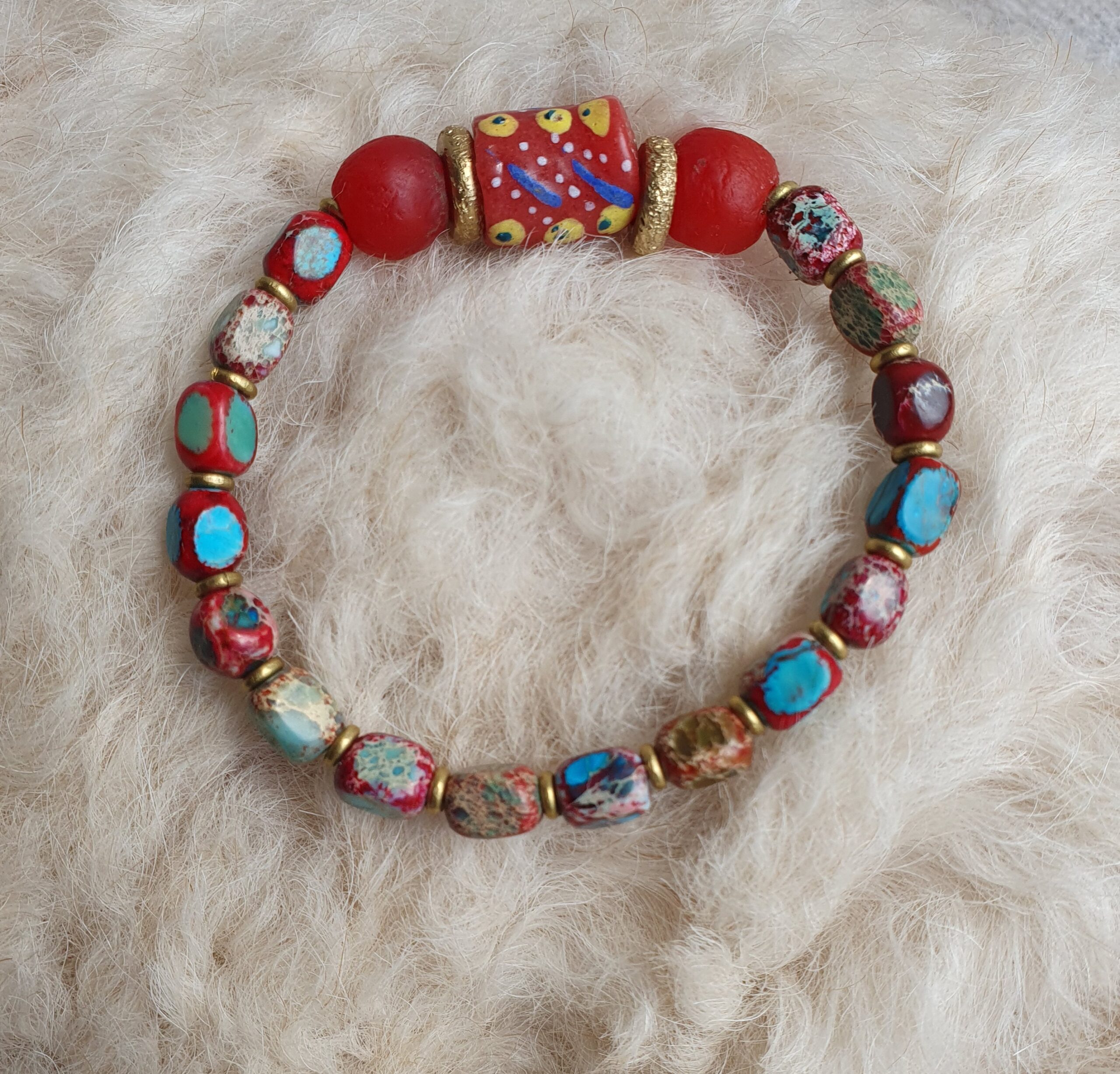 Deze armband, Indian Red nummer 3, is gemaakt van Afrikaanse poederglas kralen,