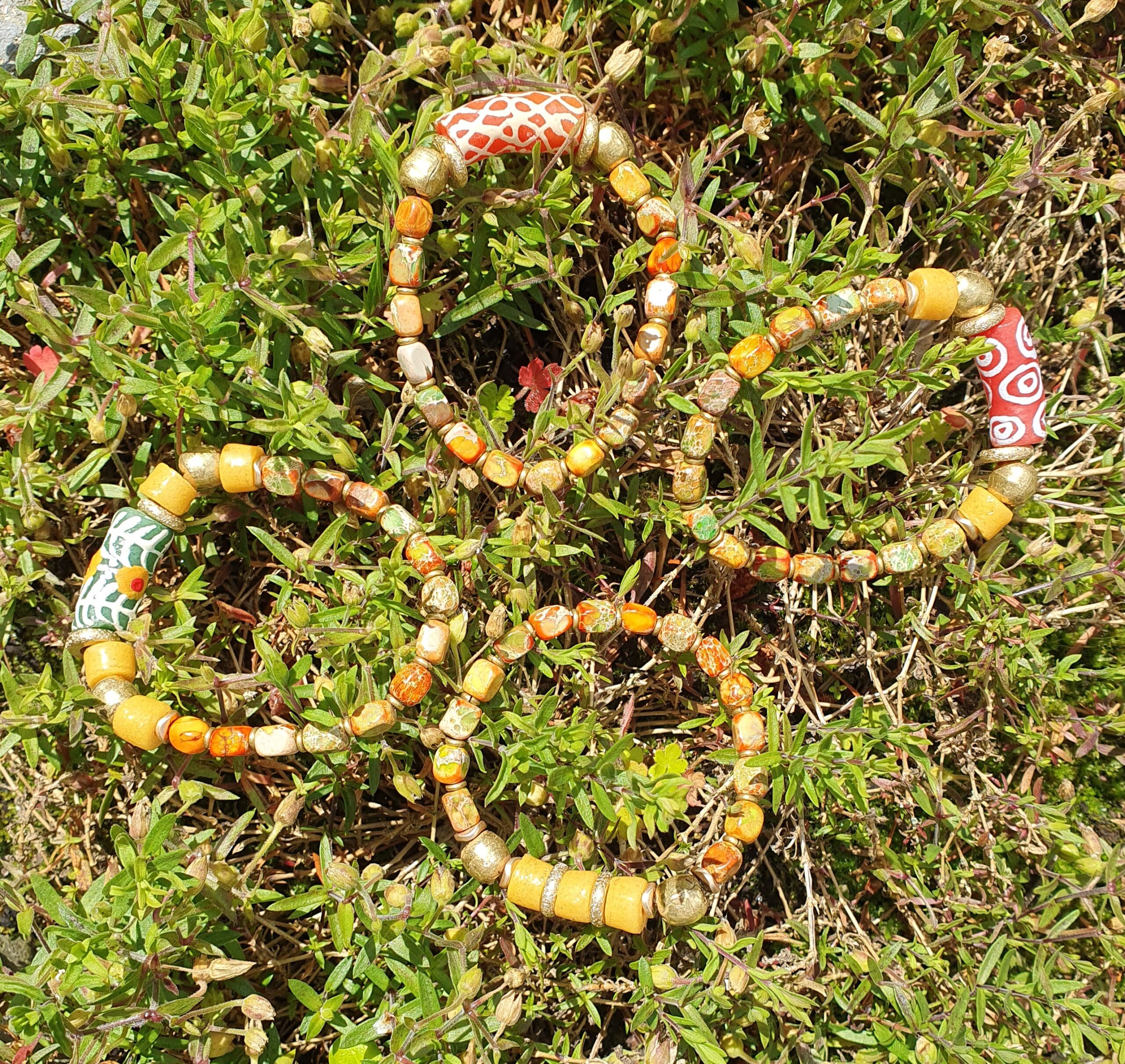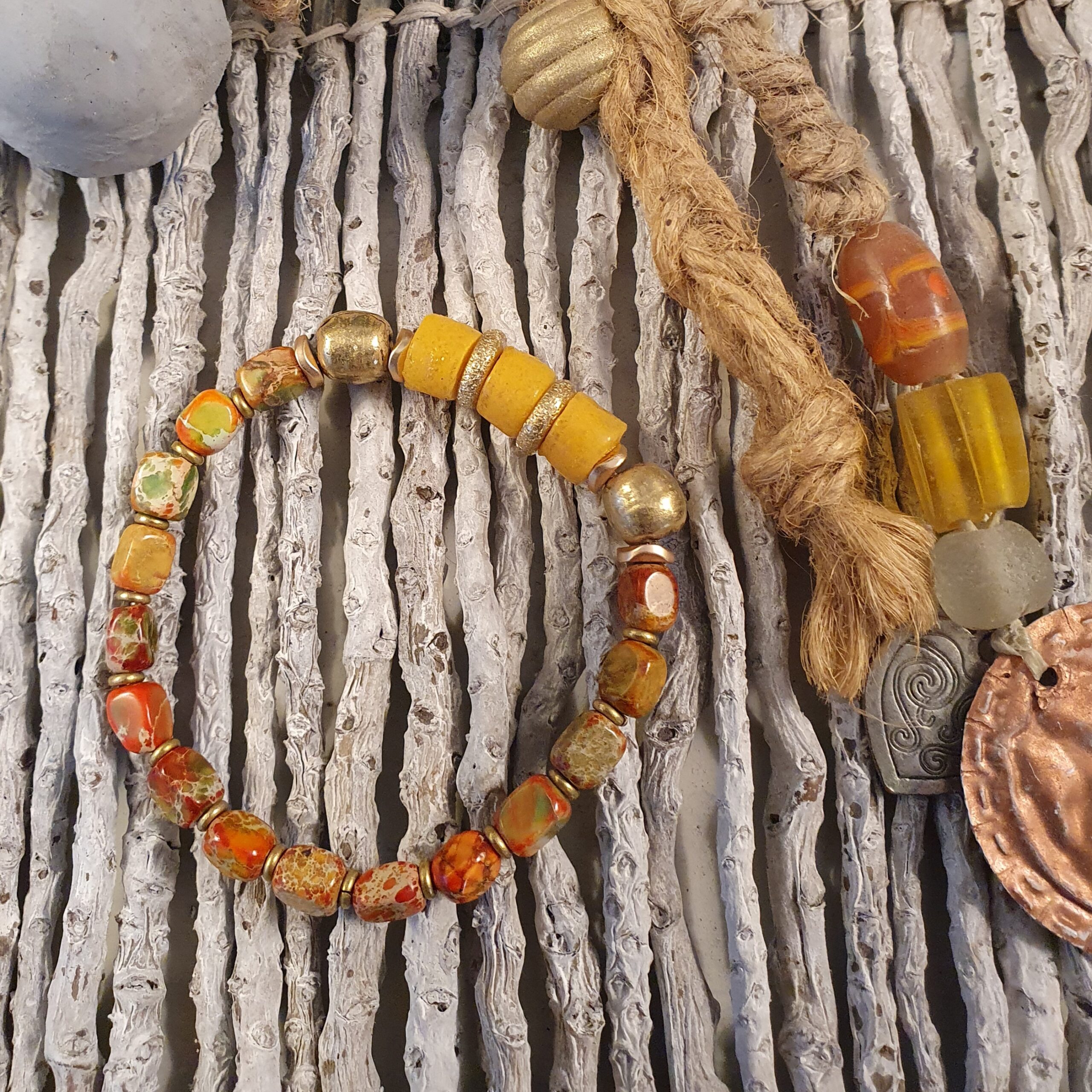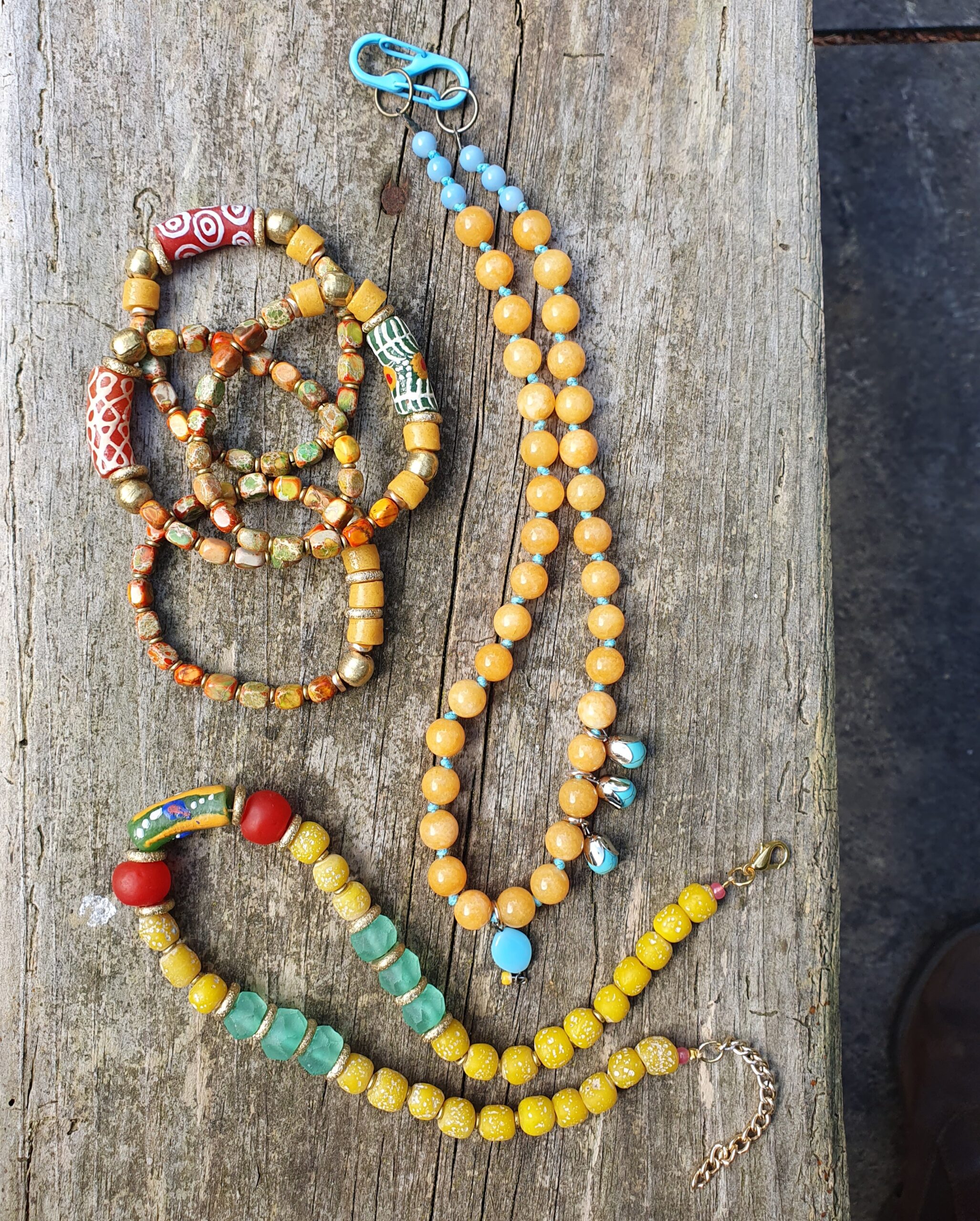 natuurstenen, bronzen kralen, ringen en kleine ringetjes uit Ethiopië.