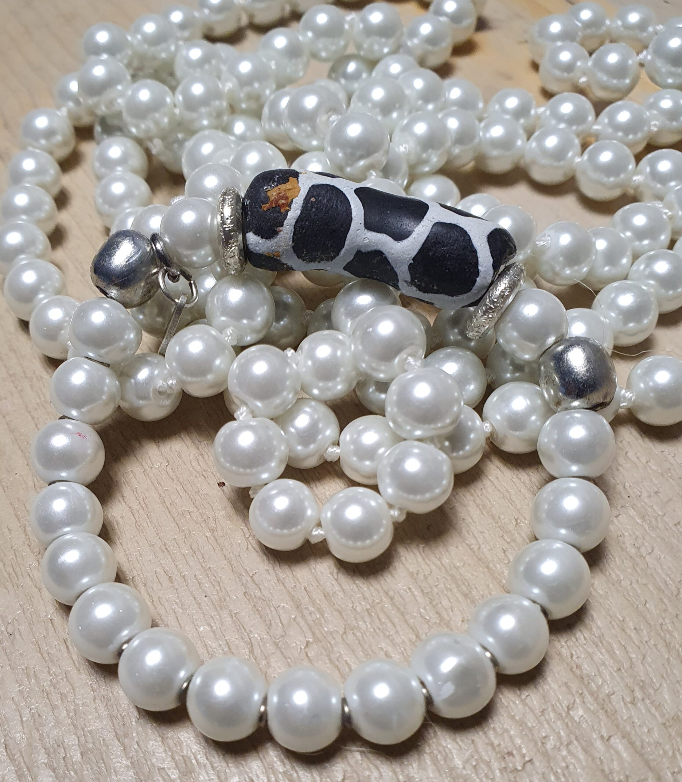 MM Witte Parel armband 6, waar traditie en elegantie samenkomen: deze unieke armband combineer je met diverse handgemaakte sieraden en met de tijdloze schoonheid van de kleurrijke en levendigheid van de Afrikaanse poederglas kralen.